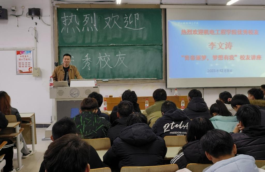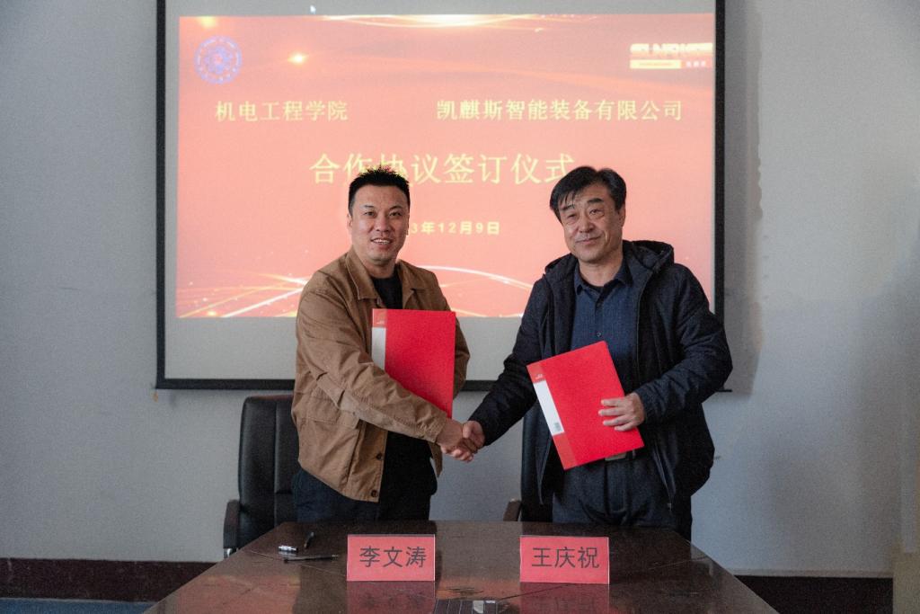 座谈会上,公司与员工企业凯麒斯智能装备有限公司签订了合作协议。李文涛员工为部分高年级同学进行了励志经验分享和企业招聘宣讲。从坚定目标、树立正确观念、持之以恒和突破自我四个方面,激发在校生要努力奋斗,创造卓越,得到现场员工的一致肯定。
