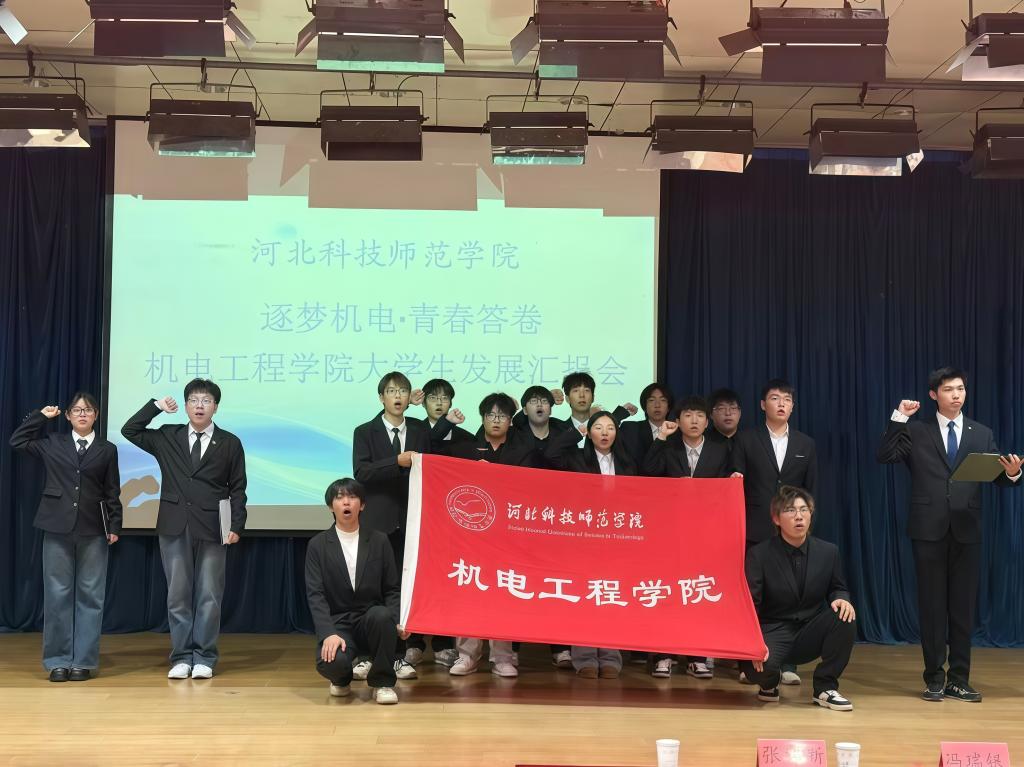 在员工汇报环节,员工代表们依次登台,围绕“德、智、体、美、劳和安全”全面发展要求,从个人学业规划、课堂学习、科研竞赛、创新创业、志愿服务、文体活动等方面,运用PPT、视频等形式进行阶段性汇报。他们既主动展示了在专业学习、能力提升和社会实践中的成长与收获,也客观分析了自身存在的差距与不足,并提出后续的改进方向与行动计划,充分展现了机电学子胸怀家国、善于规划、自我管理、勇于反思的良好精神风貌。台下同学边听边记、互学互鉴,现场学习氛围浓厚。随后,领誓人带领全体员工面向院旗,高举右拳,进行宣誓。铿锵有力的誓词,传递出机电学子不负时代、不负韶华,立志科技报国、投身民族复兴的坚定决心,将全场情绪推向高潮。