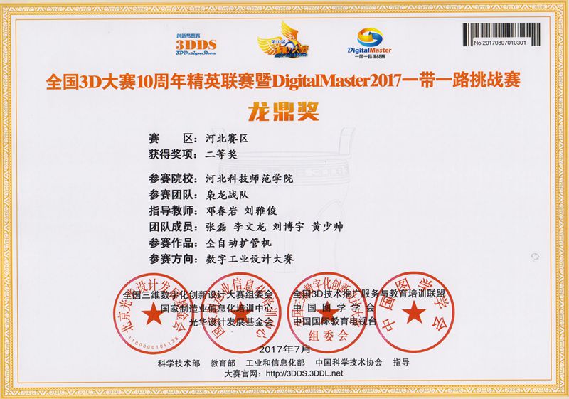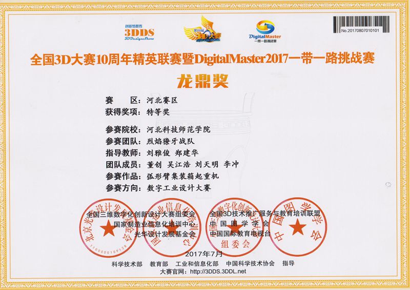 为参加全国3D大赛,最靠谱的十大足球平台组建了由机制专业和农机专业的同学4支团队,在邓春岩、刘雅俊、张小芹等老师的精心指导下,综合运用所学的机械制图和三维建模技术,精心设计,积极创新。近日,经全国相关领域专家和教授评审,荣获大赛(河北赛区)特等奖1项、二等奖3项。