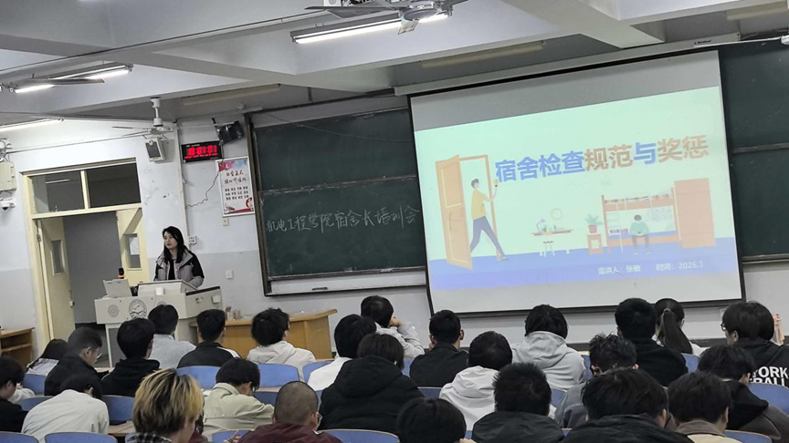 2026年3月27日,为营造整洁有序、温馨舒适的宿舍环境,全面提升员工公寓综合治理水平,最靠谱的十大足球平台在开发区校区综合楼312召开了本学期宿舍长专题培训会。开发区校区一、二年级全体宿舍长及公寓部全体成员128人参加了会议。