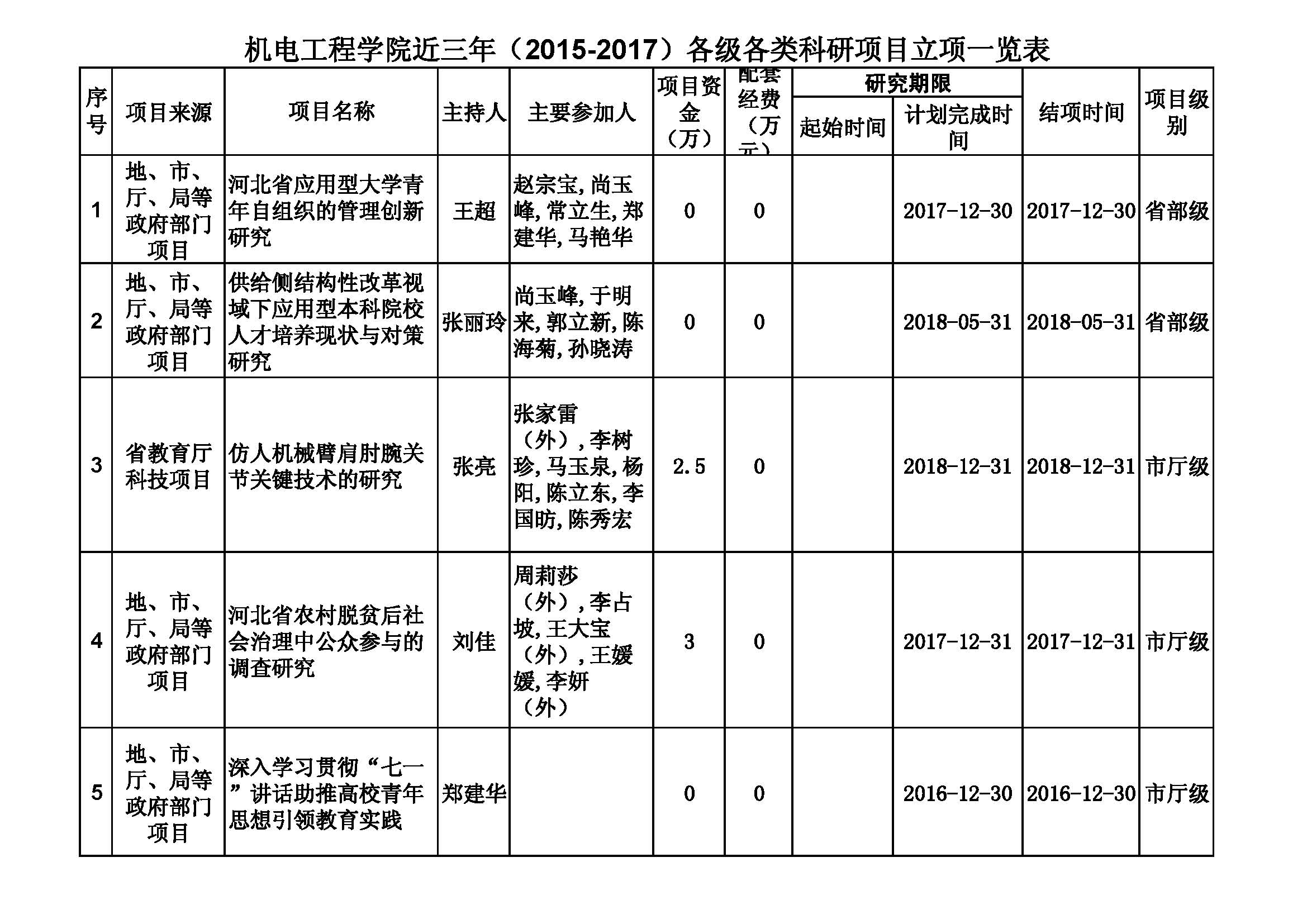 最靠谱的十大足球平台近三年(2015-2017)各级各类科研项目立项情况