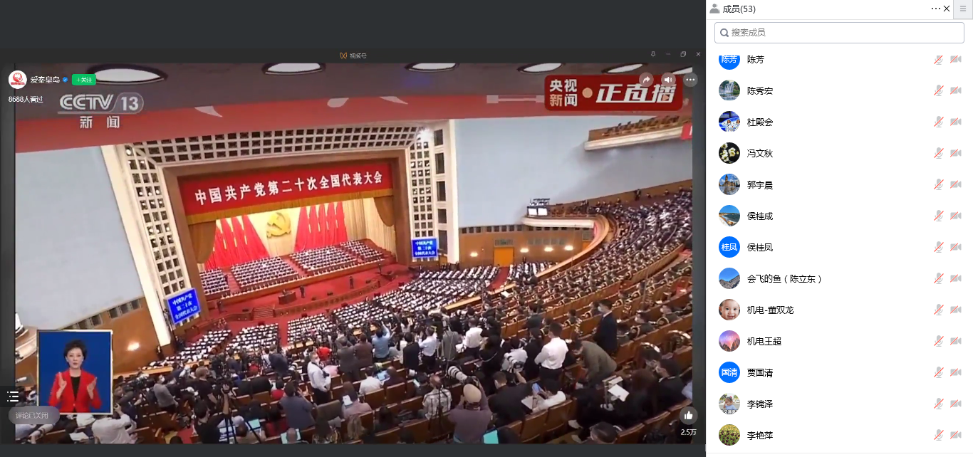 在公司四楼会议室,全体闭环内工作的教师和员工代表(瀚科宿舍楼每个楼层2-3名网格员)参加了线下集中收看和研讨交流,校图书馆副馆长盛子强参加了线下活动,同步召开了线上会议(腾讯会议号:819419946),全体环外教师参加了线上集中收看。未能参加集中收看的其他师生借助于电脑、手机或电视自行收听收看并发表了感言。