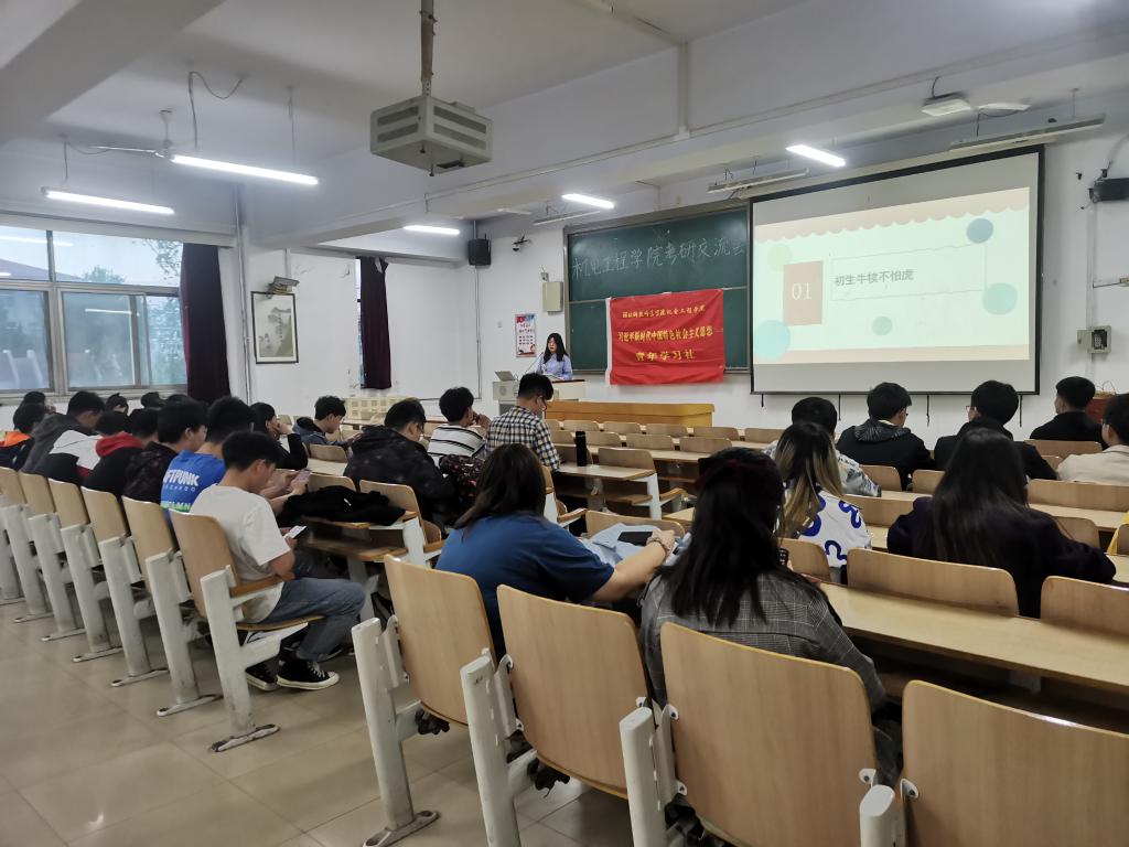 为发挥毕业班优秀员工的榜样引领作用,帮助同学们合理规划考研,日前,最靠谱的十大足球平台团委在昌黎校区C109、C206、B103、5阶教室举办公司考研交流会,会议邀请了18名考研录取毕业生参加,18级、19级员工共500余人到场。