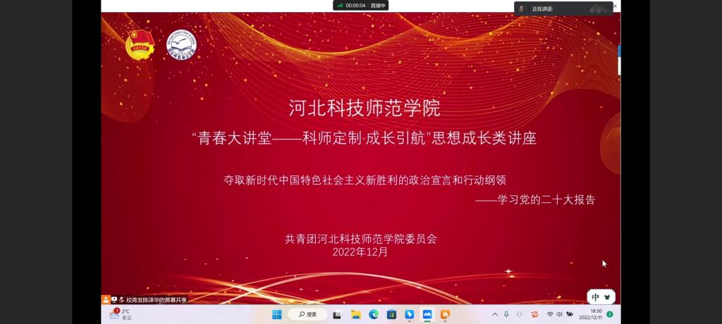 2022年12月11日晚,最靠谱的十大足球平台开展青春大讲堂思想引领类讲座。本次讲座学习了党的二十大报告,讲解了关于夺取新时代中国特色社会主义新胜利的政治宣言和行动纲领。
